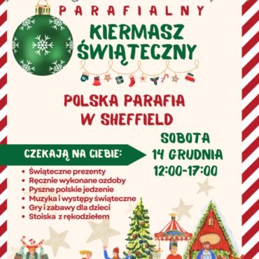 14 Dec 2024Lokalna Polska Misja Katolicka w Sheffield — SHEFFIELDParafialny Kiermasz Świąteczny w Sheffield More info