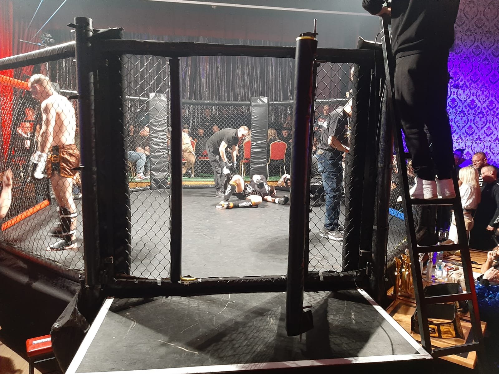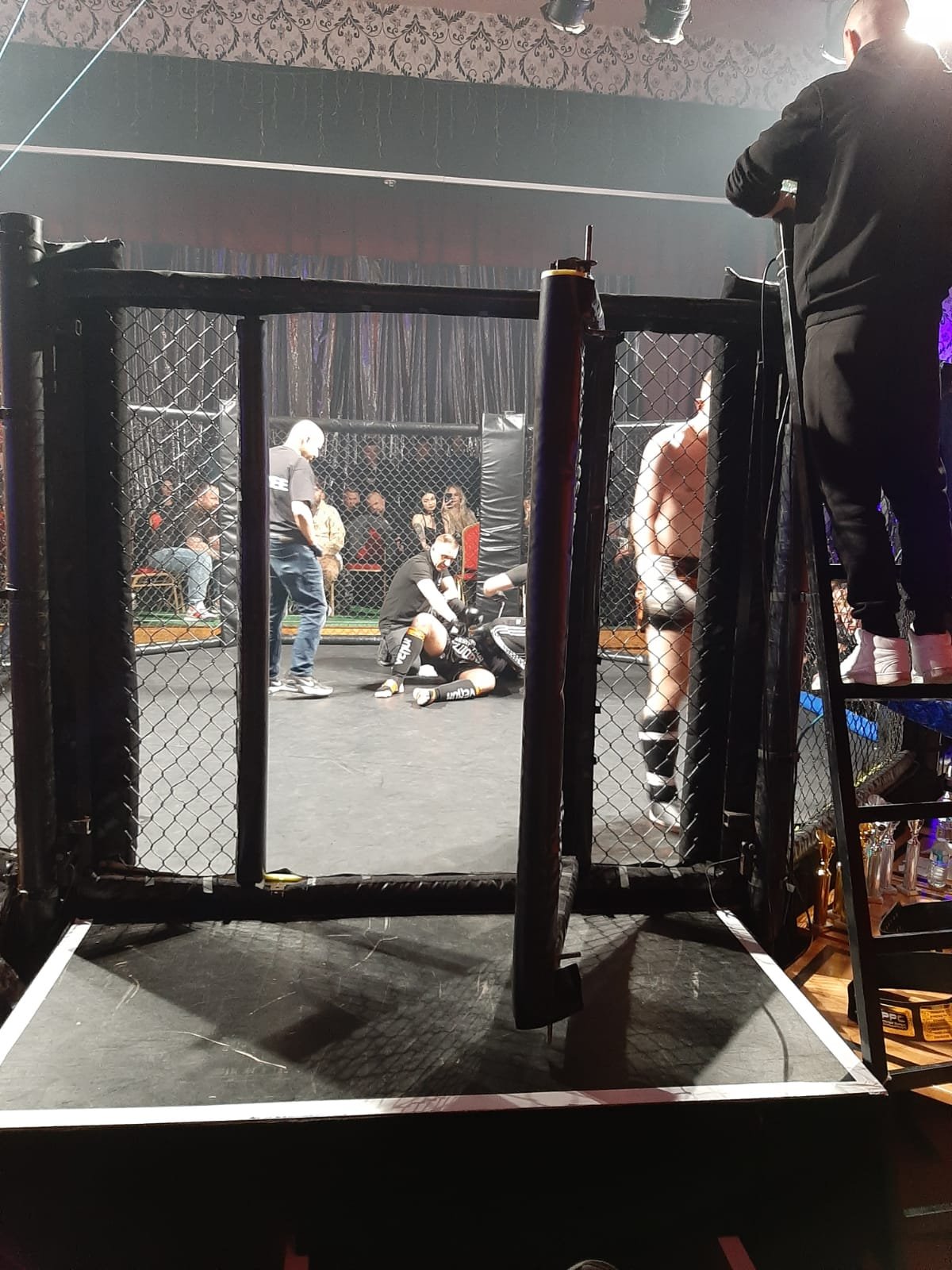 Ostatnie trzy walki wieczoru, na które czekali wszyscy zgromadzeni, nie zawiodły oczekiwań. Pierwsze starcie o pas zakończyło się już w pierwszej rundzie, niestety przez nieintencjonalne kopnięcie w krocze Gabrysia. Sędziowie po długich naradach ogłosili No Contest (walka nie odbyta). Druga walka o pas pomiędzy Krzysztofem Szmigielskim a Deimantasem Mickieviciusem została przerwana w drugiej rundzie przez sędziego z powodu obfitego krwawienia Krzysztofa. Po opatrzeniu ran, sędzia nie dopuścił do kontynuacji walki. Wisienką na torcie była walka wieczoru pomiędzy Januszem Magdoń i Krzysztofem Lanikiem. Walka wagi ciężkiej pomiędzy tytanami trwała trzy rundy. Zawodnicy zostawili w klatce nie tylko krew i pot, ale również serce. Od drugiej rundy toczyła się już walka na wyniszczenie, z której obronną ręką wyszedł Krzysztof Lanik. Po ogłoszeniu wyników przez sędziów, zwycięski Krzysztof poprosił o rękę swoją kobietę, co było miłym akcentem zakończenia wieczoru. Walki, zawodnicy oraz kibice tego wieczoru spisali się na 110 procent. Zapewne ta sobota zostanie w pamięci niejednego wielbiciela sportów walki. Kolejna odsłona już niebawem, bo 20 lipca w Chesterfield, na którą już mogę serdecznie zaprosić. Na koniec chcielibyśmy podziękować organizatorom za możliwość relacjonowania tego emocjonującego wydarzenia.