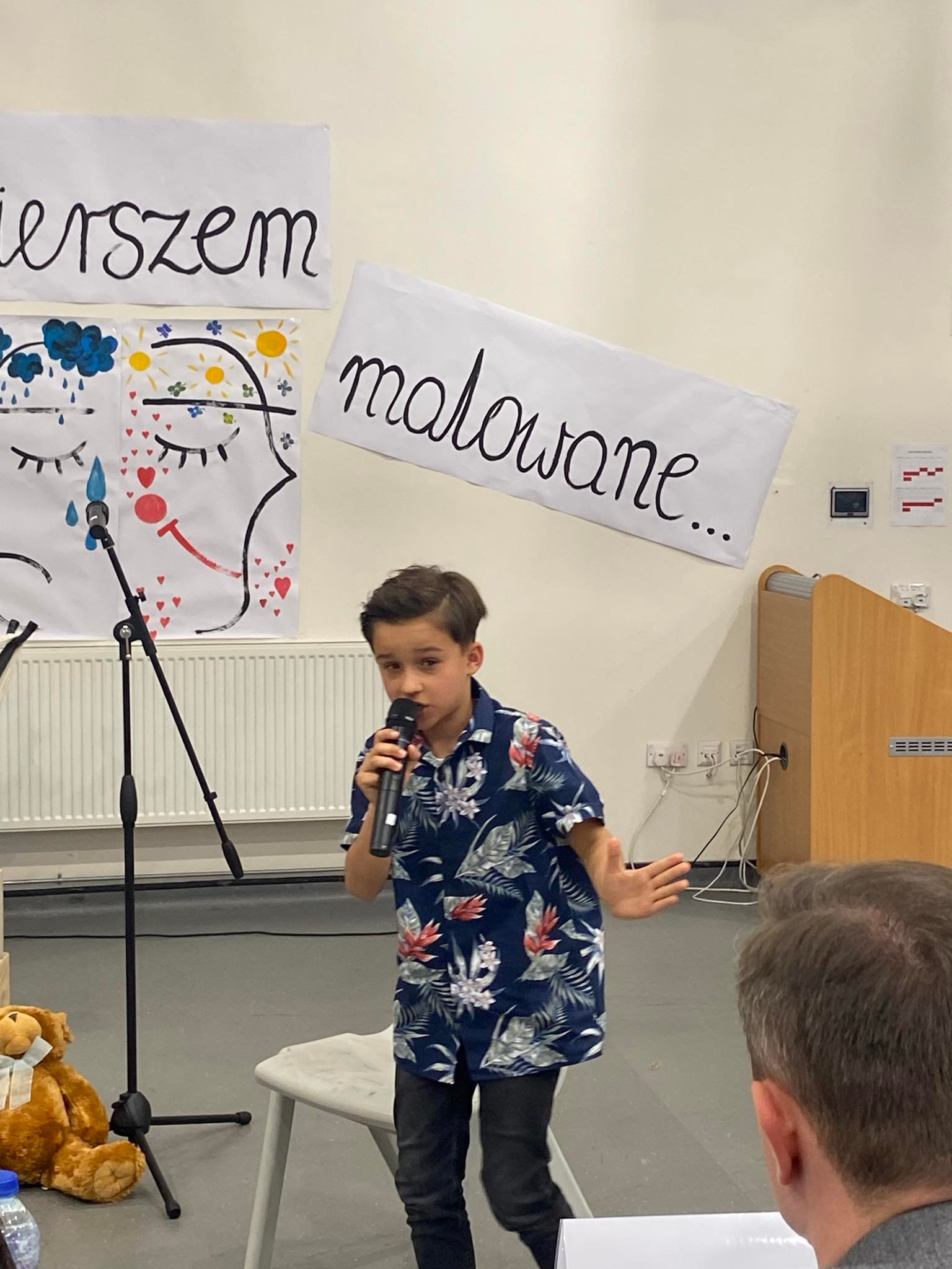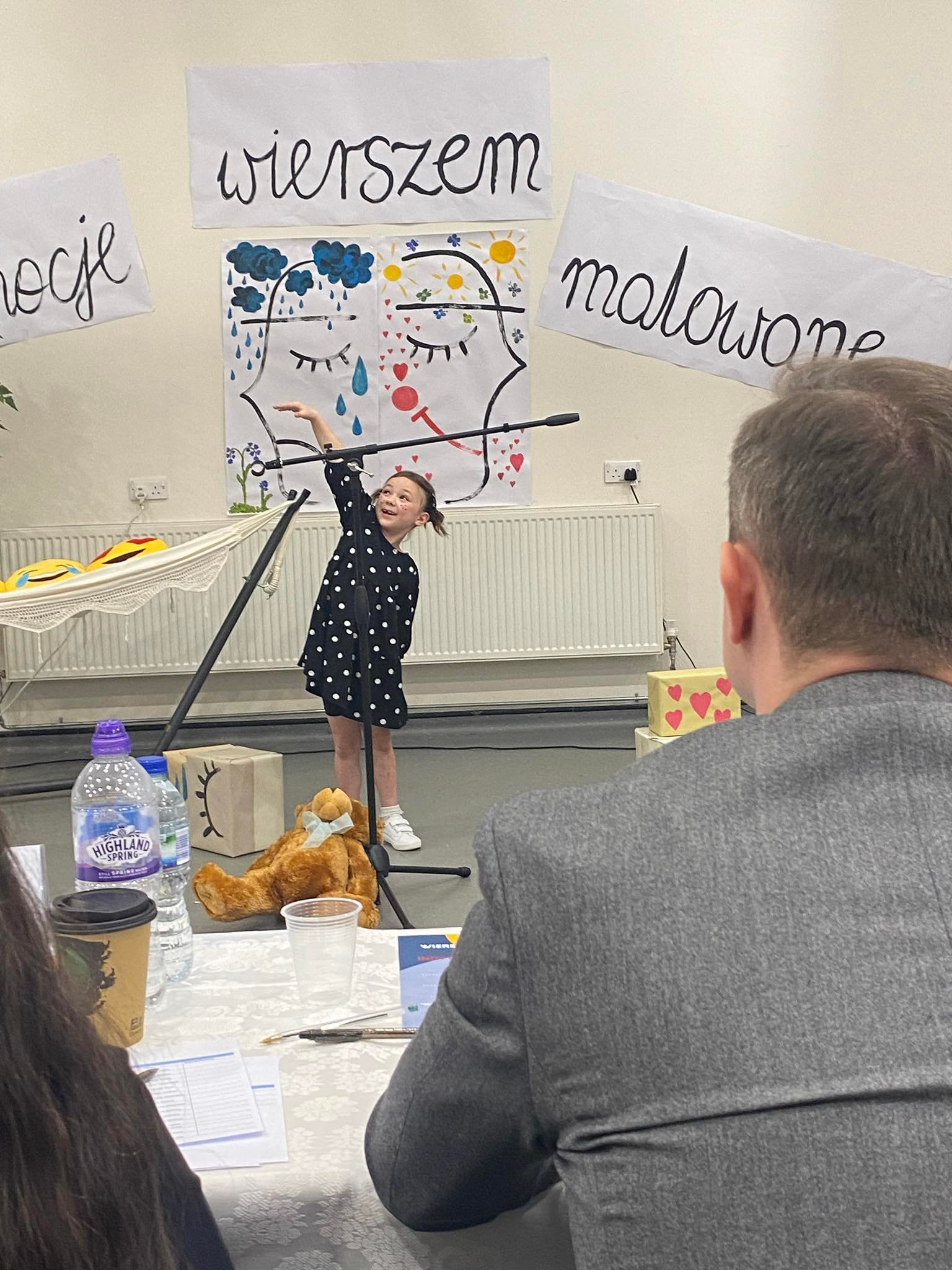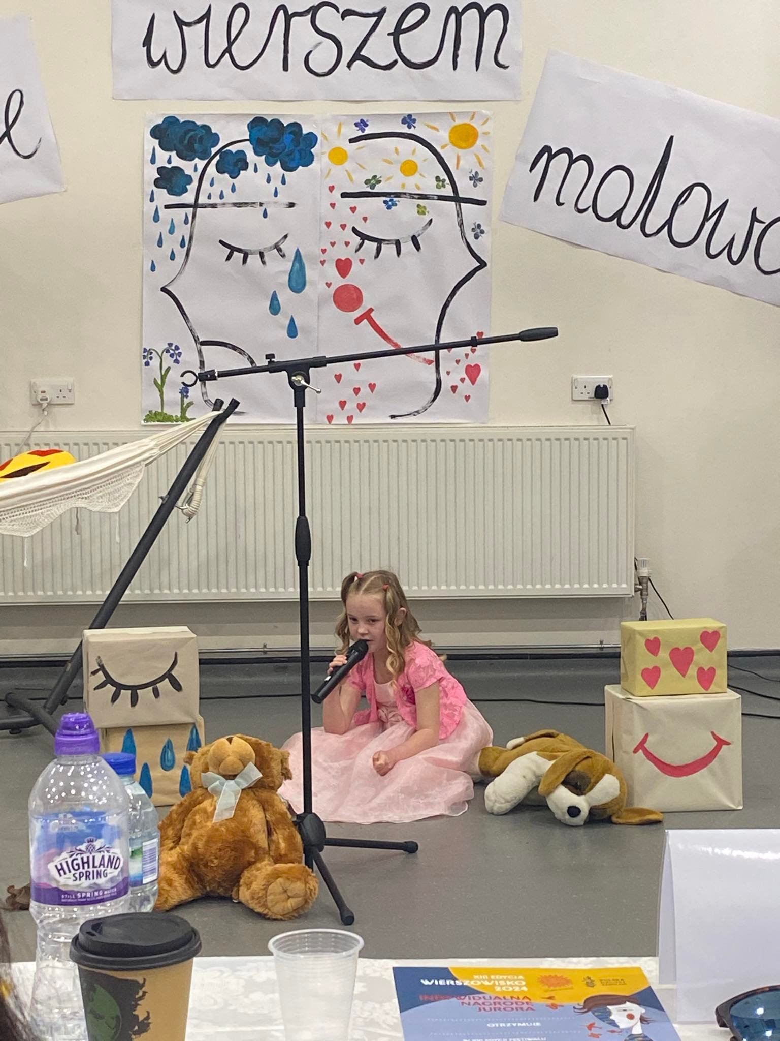 „Emocje wierszem malowane…” – zapewniamy, że tychże nie zabrakło. Poziom tegorocznego konkursu był niezwykle wysoki. Uczniowie polskich szkół sobotnich wzięli udział w konkursie w czterech kategoriach wiekowych: 4-6 lat, 7-9 lat, 10-13 lat oraz 14 i więcej oraz w kategorii grupowej. W szanownym jury zasiedli: Antonina Machowska – wiceprezes Polskiej Macierzy Szkolnej, od 17 lat członek zarządu PMS, nauczycielka języka polskiego i wicedyrektorka PSS Milford; Patrycja Zając – dwujęzyczna aktorka teatralna i filmowa, teatro-twórca, absolwentka aktorstwa w Trinity College London i Krakowskiej Szkole Wokalno-Aktorskiej, jak również Studium Terapii Przez Sztukę Inki Dowlasz; Radosław Gromski – konsul RP, reprezentujący urząd konsularny w Manchesterze; Dominik Mironiuk – aktor, absolwent wydziału Aktorskiego Łódzkiej Szkoły Filmowej, głos kilku audiobooków i słuchowisk, lektor, wokalista.