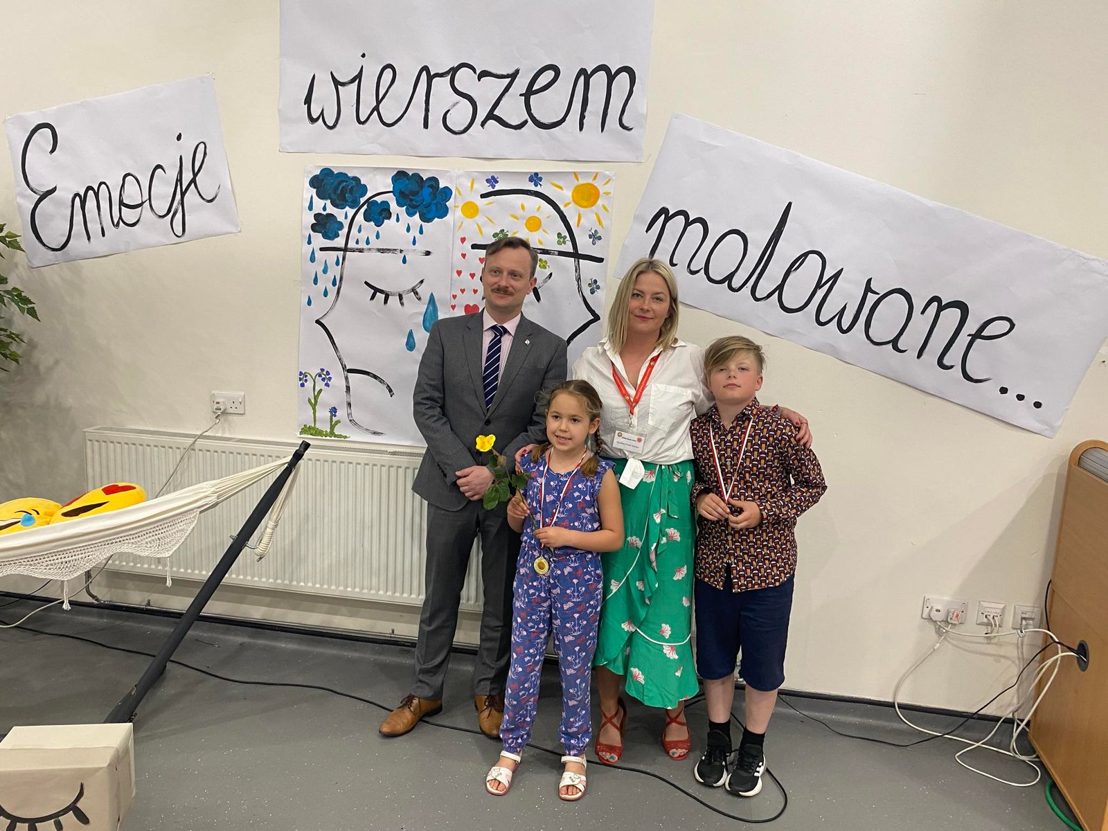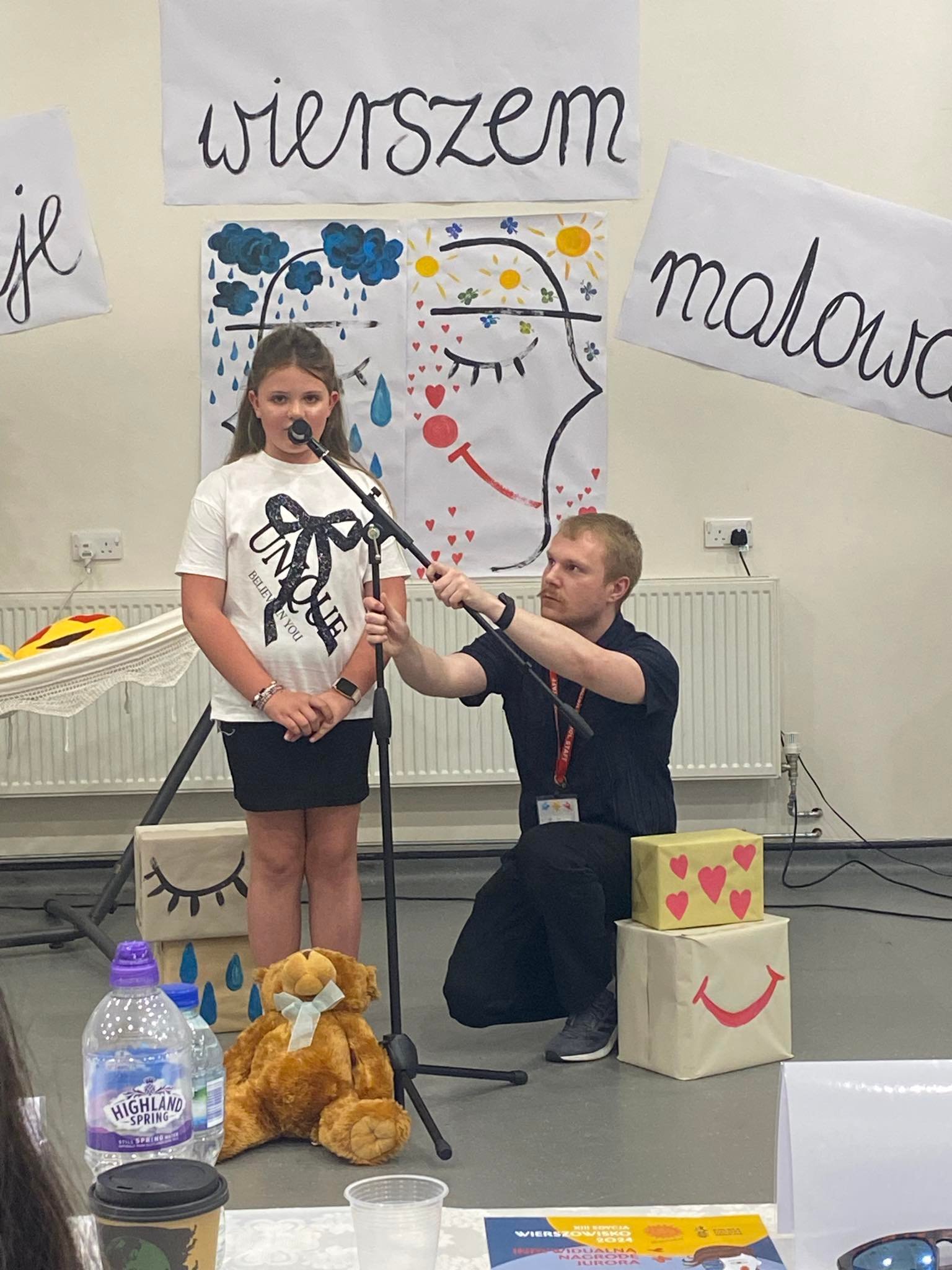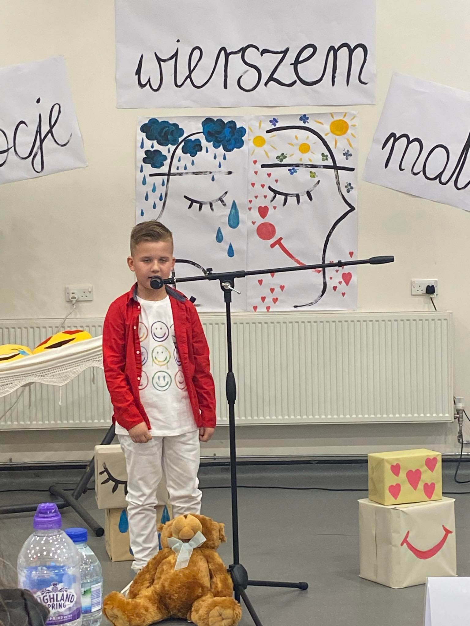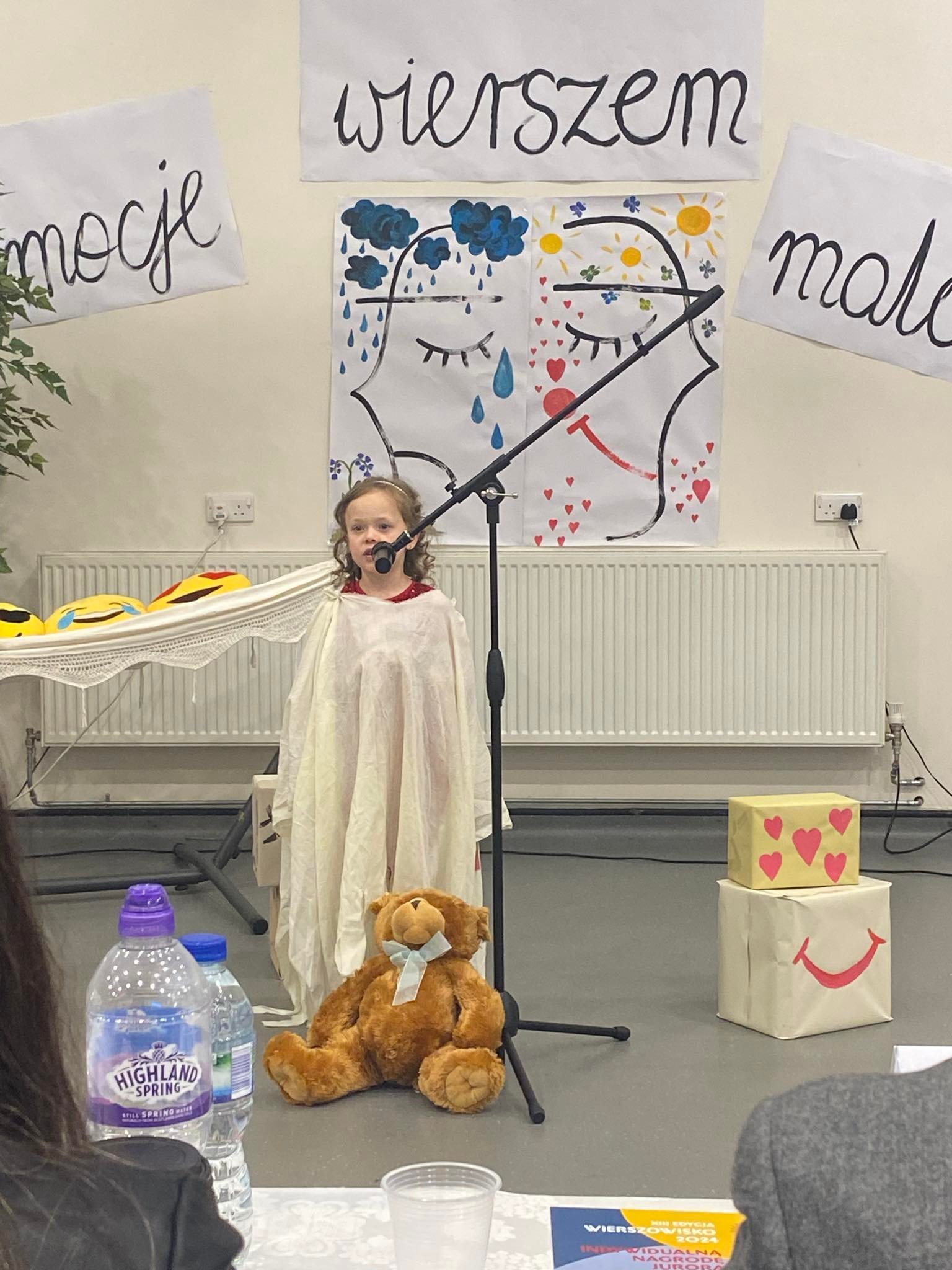 „Emocje wierszem malowane…” – zapewniamy, że tychże nie zabrakło. Poziom tegorocznego konkursu był niezwykle wysoki. Uczniowie polskich szkół sobotnich wzięli udział w konkursie w czterech kategoriach wiekowych: 4-6 lat, 7-9 lat, 10-13 lat oraz 14 i więcej oraz w kategorii grupowej. W szanownym jury zasiedli: Antonina Machowska – wiceprezes Polskiej Macierzy Szkolnej, od 17 lat członek zarządu PMS, nauczycielka języka polskiego i wicedyrektorka PSS Milford; Patrycja Zając – dwujęzyczna aktorka teatralna i filmowa, teatro-twórca, absolwentka aktorstwa w Trinity College London i Krakowskiej Szkole Wokalno-Aktorskiej, jak również Studium Terapii Przez Sztukę Inki Dowlasz; Radosław Gromski – konsul RP, reprezentujący urząd konsularny w Manchesterze; Dominik Mironiuk – aktor, absolwent wydziału Aktorskiego Łódzkiej Szkoły Filmowej, głos kilku audiobooków i słuchowisk, lektor, wokalista.